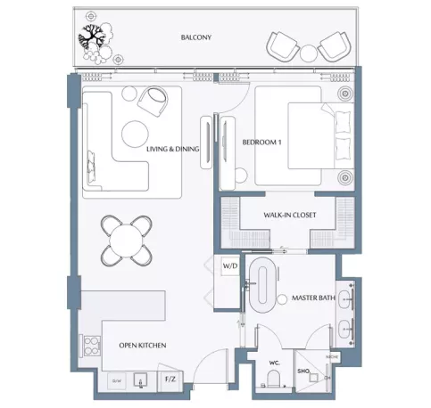 1 Bedroom - 1,040 sqft