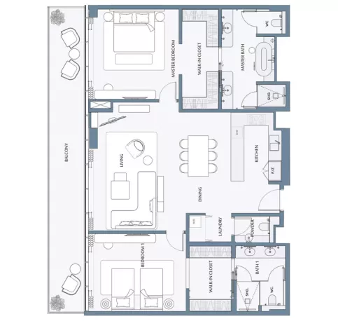 2 Bedroom plus maid - 2,055sqft