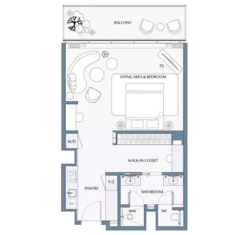 Studio - 768 sqft